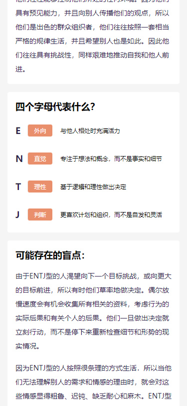 本测评依据迈尔斯布里格类型指标(MBTI)编制而成,MBTI作为当今世界上应用广泛的性格测试工具,已被翻译成近20种语言,每年都有数百万使用者。
